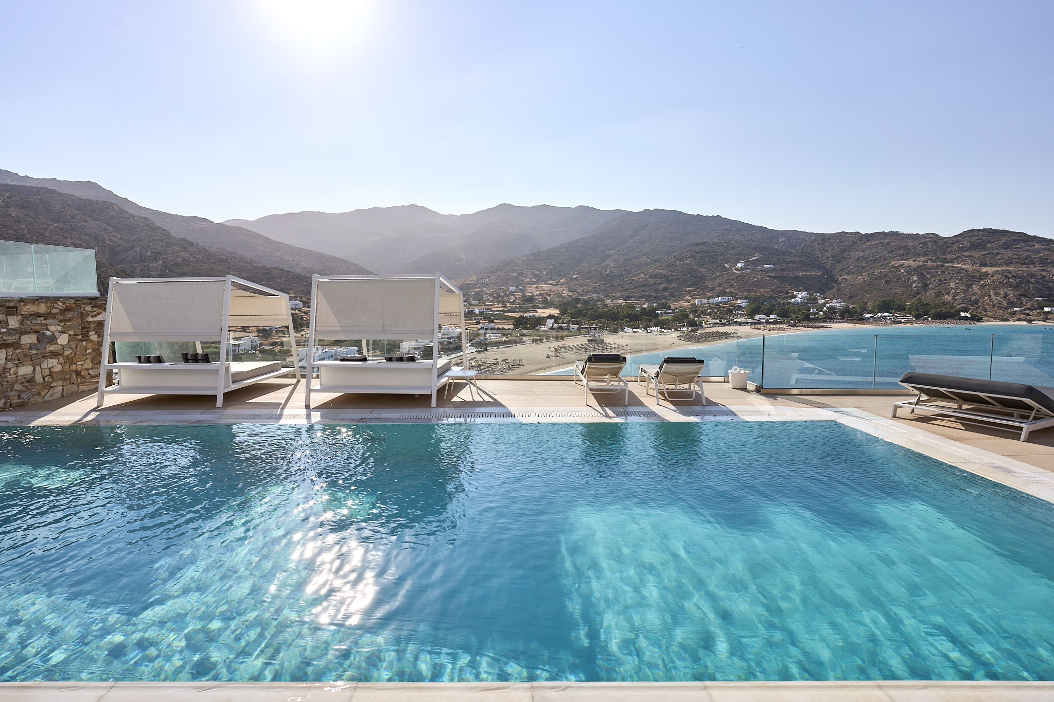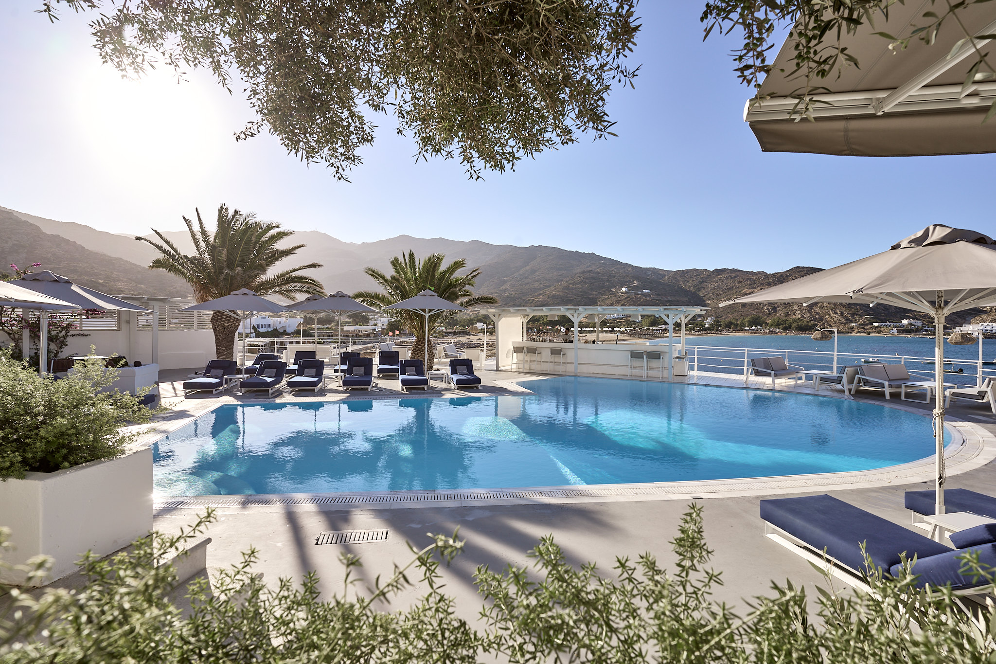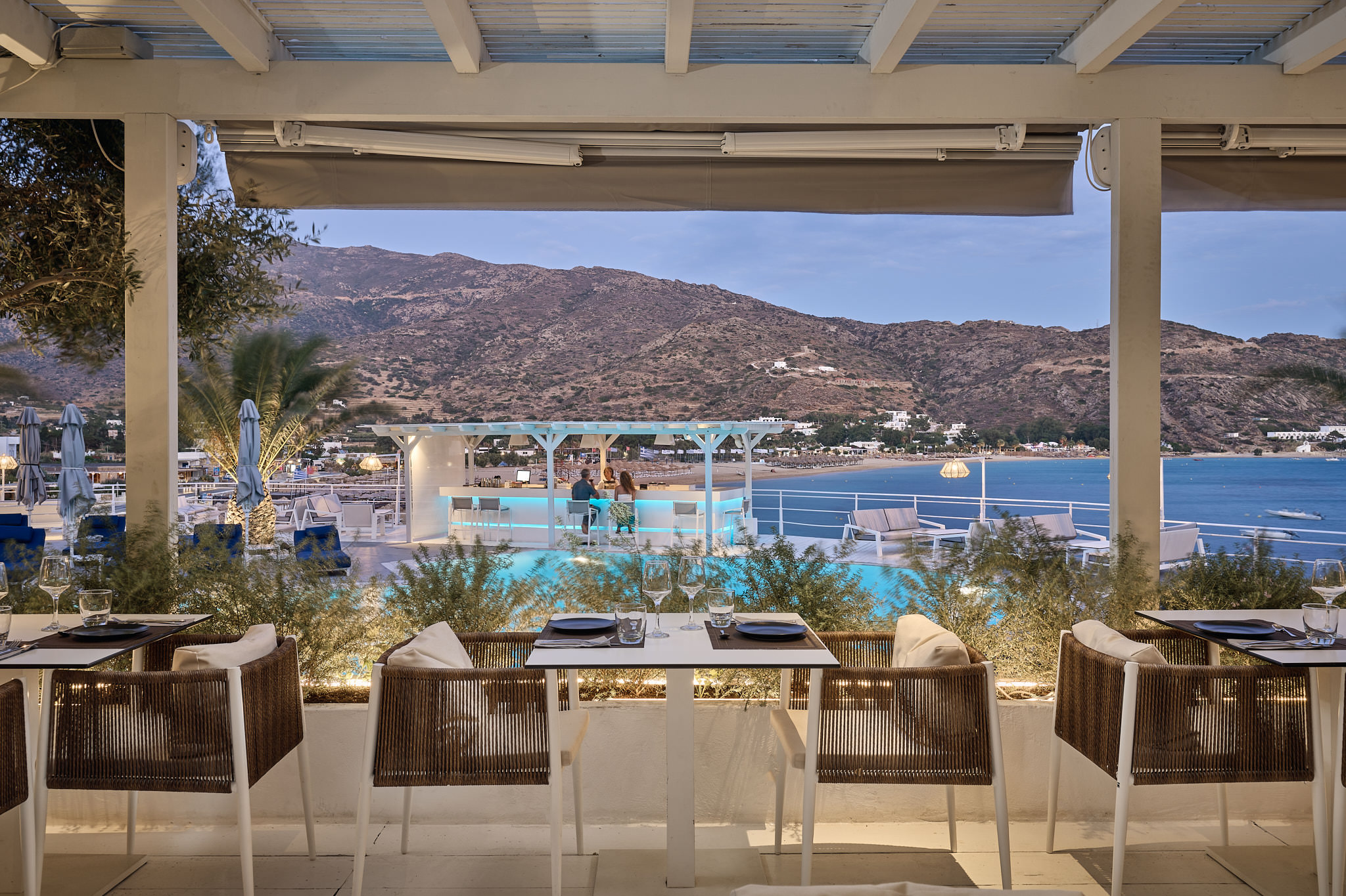 Summer days and nights are perfectly accompanied by inspired beverages and cocktails with view of Mylopotas beach. The ideal spot for a chill-out time enjoying your favorite drinks and bites by the pool marveled by the beautiful colors of the sunset.