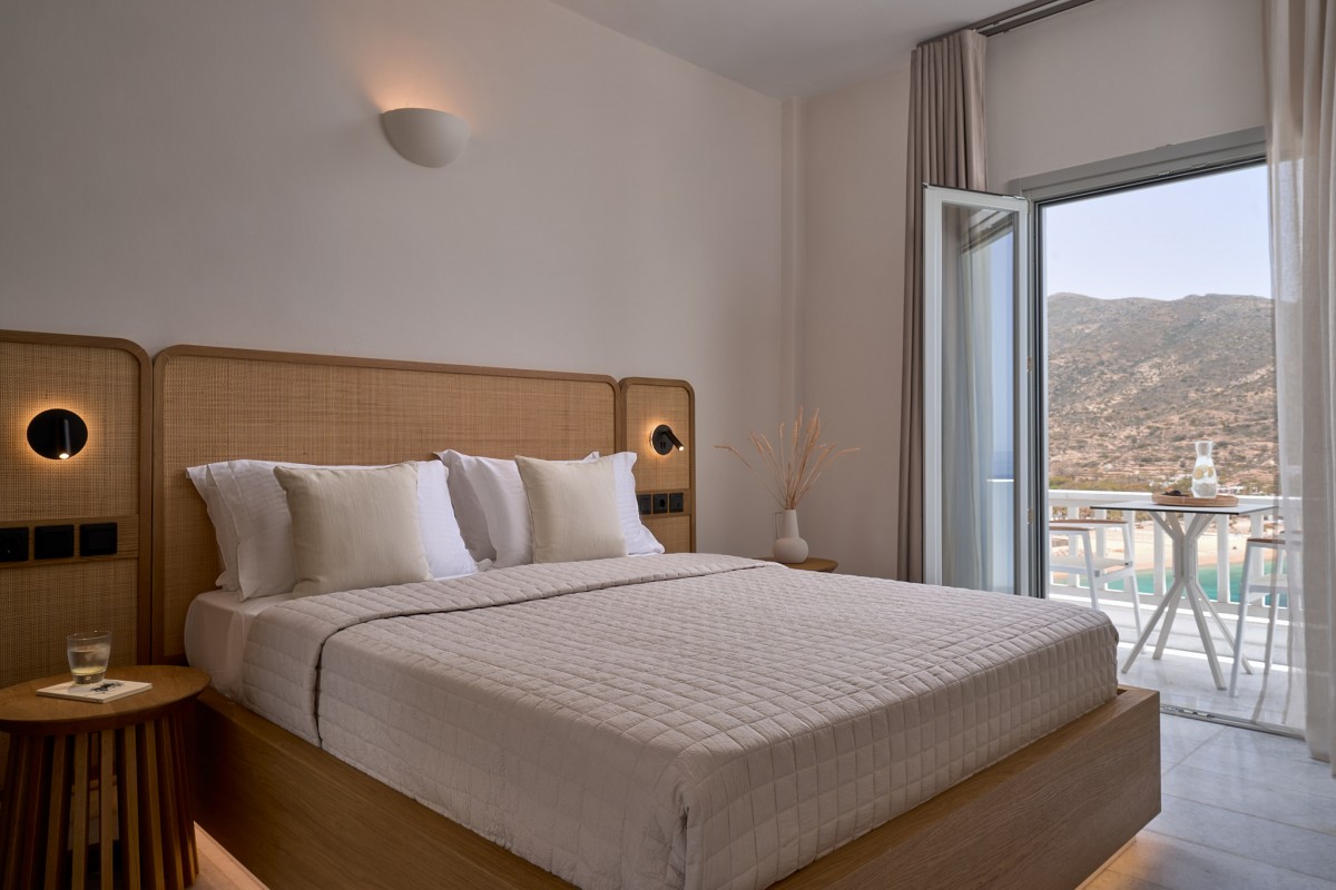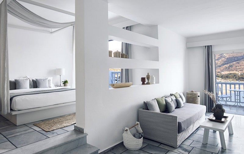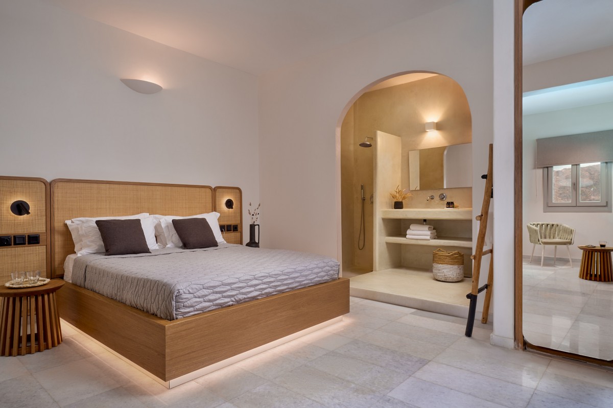Renovated in 2017, Superior rooms are located at the highest level of the complex and have an easy access to the second largest swimming pool. Their decors and furniture preserve the aesthetics of Cycladic architecture and are bound to fulfill your love for luxury and comfort.