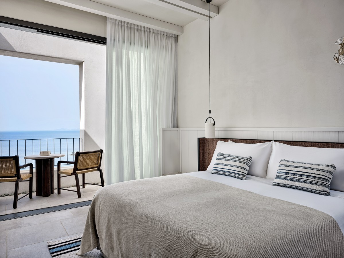 Admire breathtaking sea views and revel in the luxury of your own secluded swimming spot on a private terrace. This spacious suite includes a comfortable double bed, an additional sofa bed and a spacious veranda offering a serene escape for your stay.