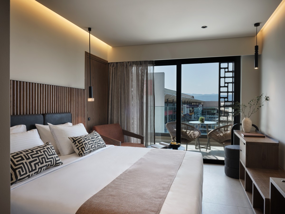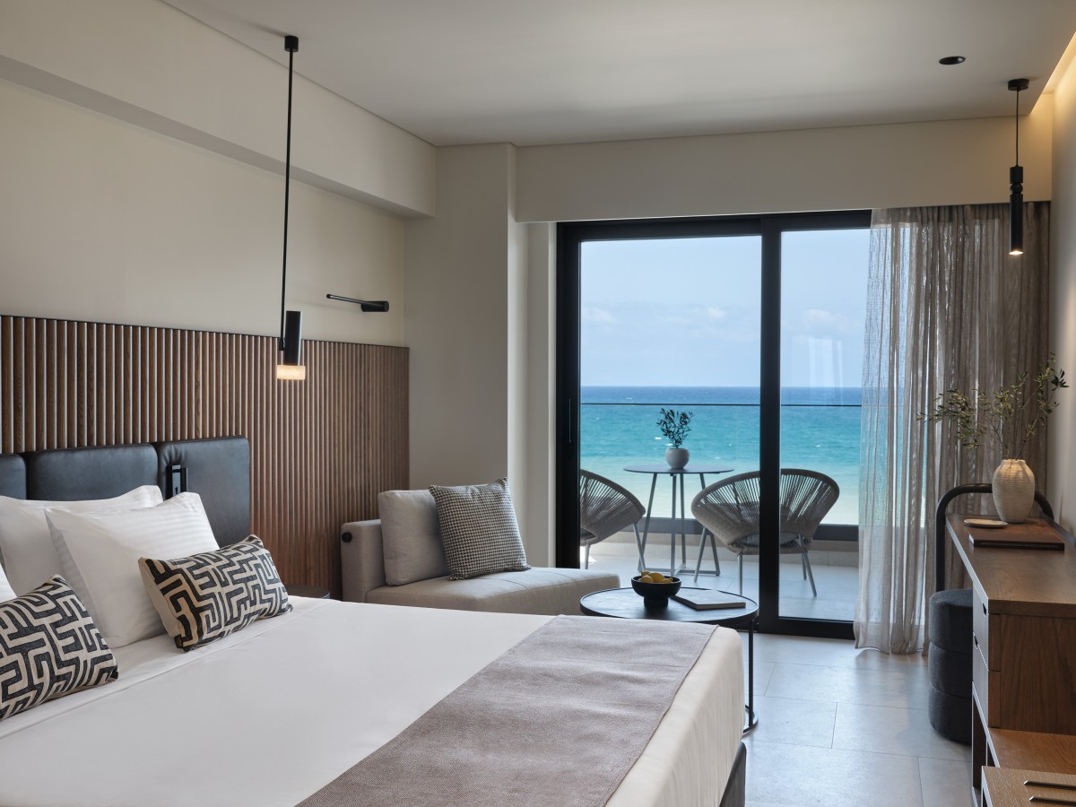 Boasting breathtaking views of the coastline, the Junior Suite combines spaciousness and comfort to create an ideal retreat. The suite features a king-size double bed and a sofa bed, making it perfect for couples, families, or small groups. Guests can enjoy the convenience of coffee and tea-making facilities, as well as premium amenities that enhance the overall experience. The private furnished balcony offers panoramic sea views, providing a serene space to relax, unwind, and take in the natural beauty of the surroundings. With a blend of elegance and functionality, this suite ensures a memorable stay