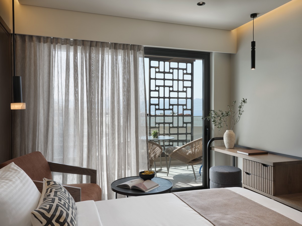 The Rocca a Mare Hotel in Heraklion, Greece, takes inspiration from the city’s historic fortress and boasts a prime location near a shopping and entertainment center, all within walking distance of the city center. This year-round retreat offers 36 elegantly designed rooms and suites, each with stunning sea views. The hotel’s interiors are thoughtfully crafted, combining contemporary sophistication with elements inspired by Minoan art and architecture. Elegant black accents, natural wood finishes, and nods to the ancient civilization create a warm and culturally rich atmosphere.